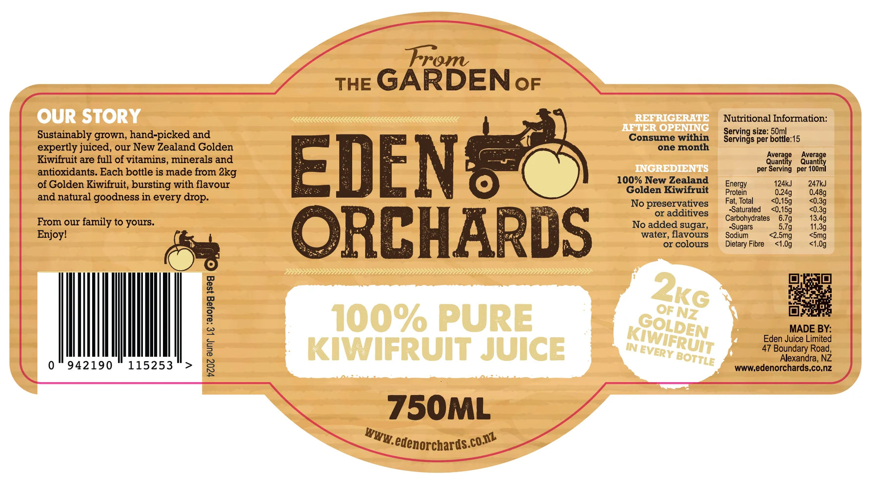 EDEN ORCHARDS 100% Pure Kiwi Fruit Juice 750ml