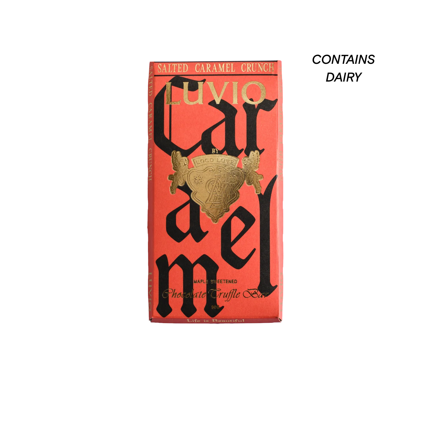A cream truffle centre with light caramel notes, crisp caramel shards, and a trace of fleur de sel. Wrapped in maple-sweetened tigernut chocolate, it melts slow and stays soft. Beautifully balanced and ridiculously easy to love. (Contains dairy).