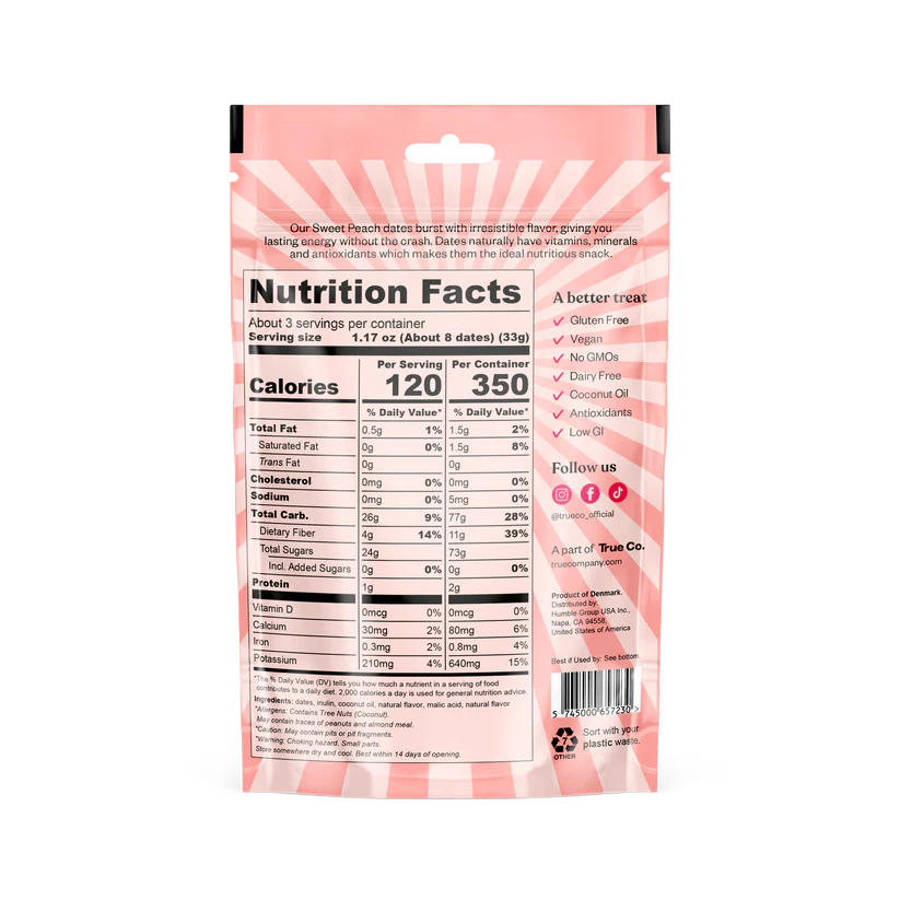 Indulge in the delightful fusion of dates and the essence of ripe peaches with our Sweet Peach True Dates™. It’s a sweet escape – a harmonious balance of flavors that captivates your taste buds with every bite.